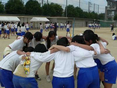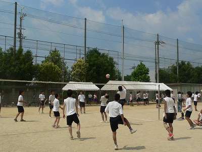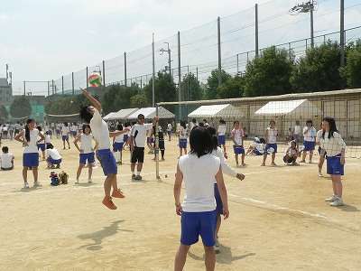 平成25年7月10日(水)に、3年生がスポーツ大会を実施しました。グラウンドで男女ともにバレーボールを行いました。学級・学年の仲間との親睦を図ると共に、団結力を高める絶好の機会となりました。