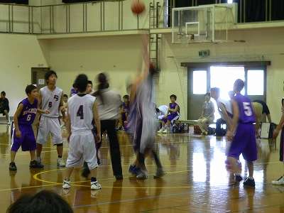 平成25年7月15日(祝)午前9時から、洛南中学校において、男子バスケットボールの2回戦が行われました。対戦相手は朱雀中学校でした。第1クォーターから切れ味の鋭い動きで相手を圧倒し、33対4と点差をつけ主導権を握りました。第2クォーターは19対2、ハーフタイム後の第3クォーターは25対10、第4クォーターは13対4と、7〜8割相手陣内で試合をしていました。時には空中でボールをもらいそのままシュートし得点するという高度なプレーもありました。トータル90対20と1回戦に引き続いて大勝しました。
