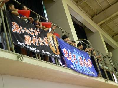 1・2年生を中心とした応援団が欄干から声を合わせて、プレーしている選手たちに勇気を与えるような、統制のとれた素晴らしい声援を送っていました。次の試合は7月15日(祝)の午後2時20分頃から、洛南中学校において、七条中学校と対戦します。応援、よろしくお願いします。