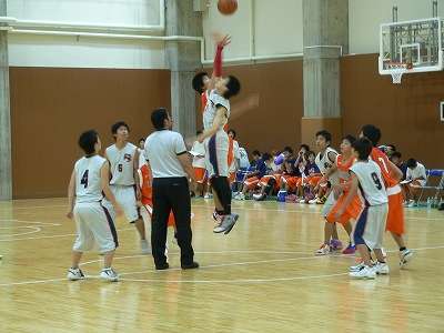 夏季大会ですでに3勝している男子バスケットボール部。ベスト8をかけた戦いが、平成25年7月20日(土)に府立体育館で行われました。対戦相手は強豪山科中学校でした。序盤に連続ポイントを上げさい先の良いスタートを切りましたが、途中から劣勢にまわる試合展開となりました。クォーターが進む連れて、点差が広がっていきましたが、選手たちは最後まであきらめることなく一生懸命プレーをしていました。残念ながら力及ばず敗戦しました。