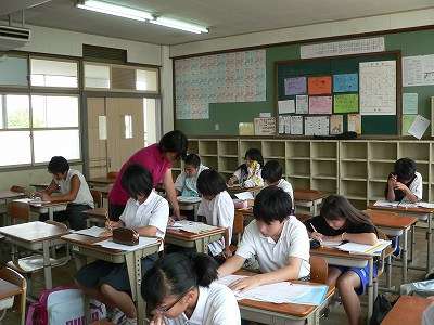 昨日に引き続いて、本日7月25日(木)もサマースタディーを実施しました。1年生は124名、2年生は106名、3年生は61名、合計291名の参加がありました。各学年とも昨日同様、自分が持ってきた課題に熱心に取り組んでいました。行き詰まっている生徒に、先生が適切な支援をしている場面もありました。後半は8月19日(月)20日(火)の2日間です。この日までに夏休みの宿題ができているように、計画的に学習に取り組んでください。8月19日(月)に、元気な顔を見せてください。楽しみにしています。