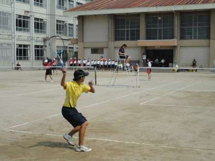 平成25年7月25日(木)に四条中学校において、女子ソフトテニスの団体戦決勝トーナメントが行われました。