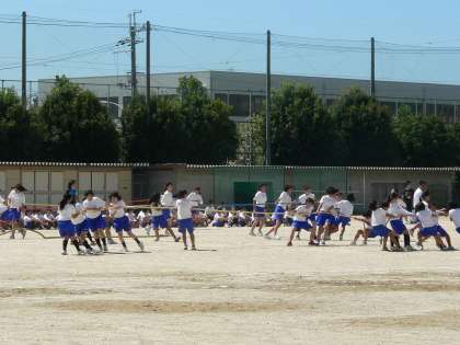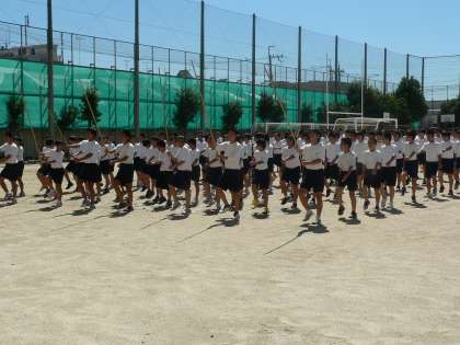 9月17日(火)3・4限に2年生が体育祭学年別練習を実施しました。男子、女子に分かれて入場行進の練習をしていましたが、「イチ、ニ、イチ、ニ」の掛け声をかけながら元気よく行進練習をしていました。その後、団体種目の「ショートつなひき」と学年別クラス対抗リレーの練習を楽しそうにかつ真剣に行っていました。どのクラスも一生懸命頑張っていました。
