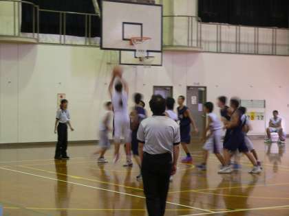 平成25年9月23日(月・祝)に洛南中学校において、男子バスケットボールの秋季大会1次リーグ予選の2試合目が行われました。この日の相手は開睛中学校でしたが、第1クォーターから取りつ取られつのシーソーゲームを繰り広げていました。第4クォーターの終盤、6点差を付けて残り数十秒、シュートを決められ4点差、ボールを回している間に相手に取られ、残り1秒で3ポイントシュートを打たれました。これが決まり54対53、そして試合終了のホイッスルが鳴り、1点差で劇的に勝利を収めることができました。