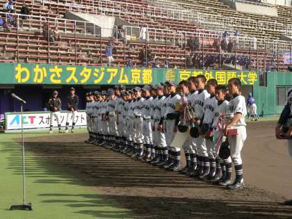 日々の厳しい練習に主体的に取り組み,着実に力をつけてきた野球部のみなさん,優勝おめでとう。「わかさスタジアム京都」というすばらしい球場で,最高の結果を出せて,本当に良かったですね!この成果を励みに,今後ますます練習に励んでください。