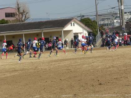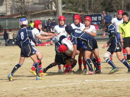 平成26年2月1日(土)に吉祥院グラウンドにおいて,ラグビーの新人戦(秋季大会)決勝トーナメントが行われました。初戦の相手は修学院中学校でしたが,前半に3本のトライを奪いゴールも2つ決めて,19対0として前半戦を終了しました。後半は2トライ1ゴールを奪いましたが,相手にも2トライを許しました。合計31対10で勝利し,ベスト8となりました。
