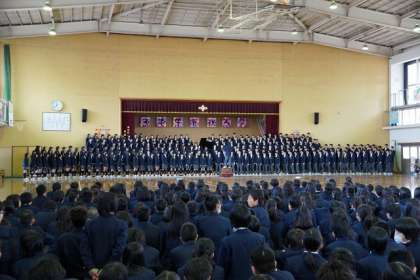 僕たちは3月13日に卒業します 洛南中学校で過ごした3年間 仲間がいるからこそできたことがたくさんあります 仲間がいるから修学旅行を良いものにすることができました 仲間と共に体育祭を盛り上げ 文化祭 合唱コンクールですばらしいものを発表することができました また 部活動でも共に高め合うことができました 中学校での思いでは一生忘れません 1・2年生に伝えたいことがあります 一つは仲間を大切にしてほしいことです もう一つは 何よりも 今が大切だということです 今という時間は一度しかありません なにもしないまま終わらせることもできます しかし そうすれば必ず後悔します 後になってあのとき もっとしておけばよかったと思います だから 今を 大切にしましょう 部活でも勉強でも何でも精一杯がんばりましょう そして 自分が納得のいく結果を手に入れて下さい。