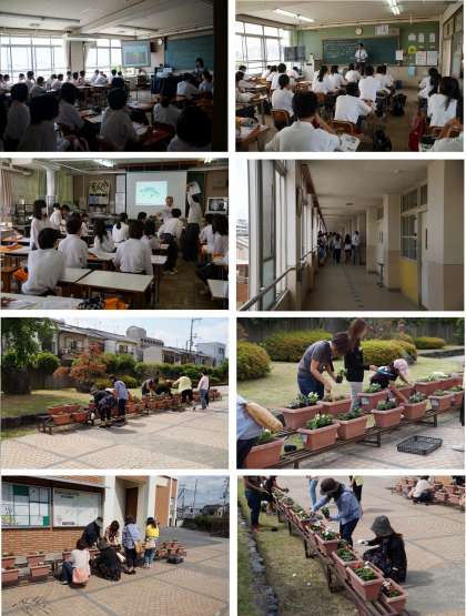 学級委員さんに各学年で受付を担当していただきました。地域委員さんに駐輪場の誘導と整理をしていただきました。教養委員さんを中心に学年委員さん地域委員さんと花の苗を植えていただきました。