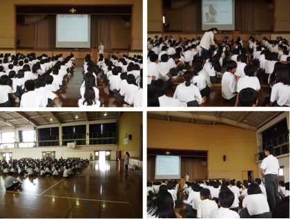 平成27年6月30日(火)講師の先生を招いて,1年生で「いのちの教室」を実施しました。いのちの大切や,奇跡が重なって子どもたちが生まれてくることなど,一人一人に語りかけながら,話が進んで行きました。生徒の感想からは,「みんな命がけで生まれてきたいのちだから,傷つけることは絶対にしないし,させないようにしたい。」などの声が聴かれました。