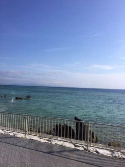 フェリーに乗るため,本部港に向かいます