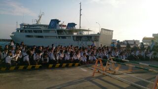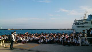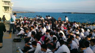 港で記念撮影