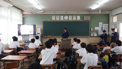 最終日に洛南中学校に戻って,中学校1年生の30名の生徒たちに,体験の成果を「非行防止教室」で発表しました。警察官の制服を着させていただき,立派な発表を行っていました。