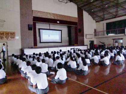 校長先生のお話,表彰伝達,夏季大会DVD視聴のあと,教育実習生の紹介がありました。2学期は,体育祭を皮切りに文化祭,合唱祭などの大きな行事がたくさんありますが,思い出深いものとなるようみんなで協力して成功させましょう。