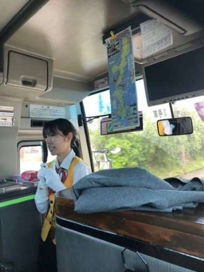 バス内で,ガイドさんより沖縄での戦争の歴史の話を聞きました。