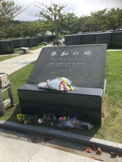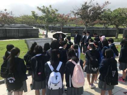 資料館を見学後,ガイドさんの案内で公園内の平和の礎などの見学をしました。