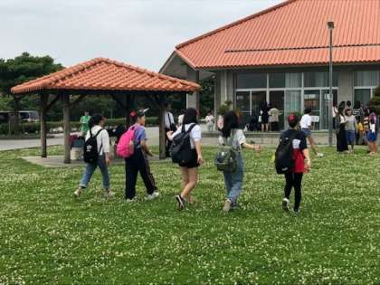読谷村役場です。午後になって,続々と民泊体験から戻ってきました。