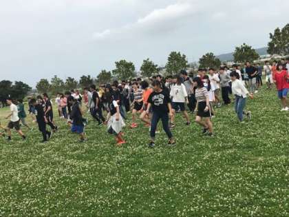 お世話になった民家の方に感謝の気持ちをこめて,また,京都の文化を知っていただくために,全員でそでふれを披露しました。