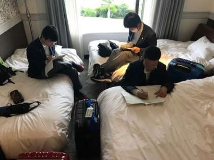 朝食を終え,出発に向けて部屋の片付けや荷物の支度をしています。