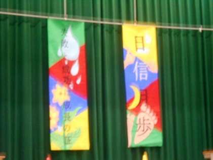 また、結団式では,学校祭のスローガン「日信月歩 〜失敗と成功は成長の証〜」が発表されました。