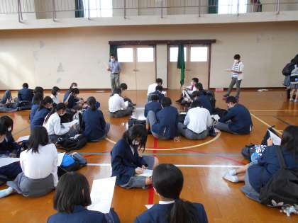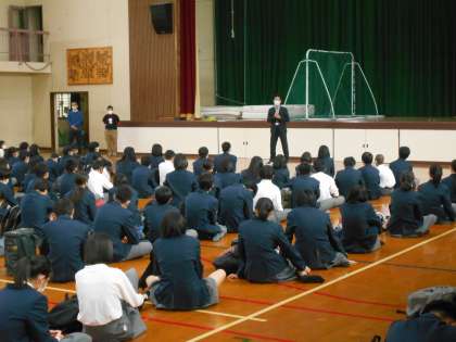 本日,6限体育館にて,3年生の修学旅行事前指導がありました。明日からの旅行中の心構えや注意事項を確認しました。