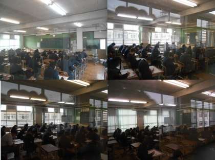 1年生と2年生が今年度最後の学習確認プログラムに取り組んでいます。今日は,1年生が社会・国語・数学,2年生が理科,社会,数学です。