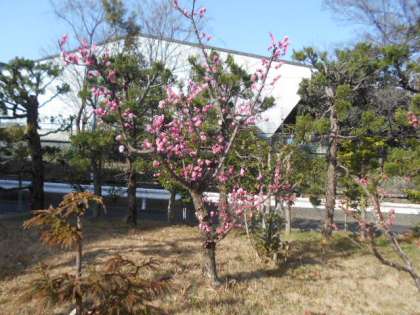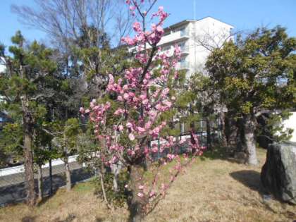 3月1日,今年度の締めくくりの月になりました。今朝は,春の到来を感じさせるあたたかい朝です。校門付近の築山の梅もちょうど満開です。