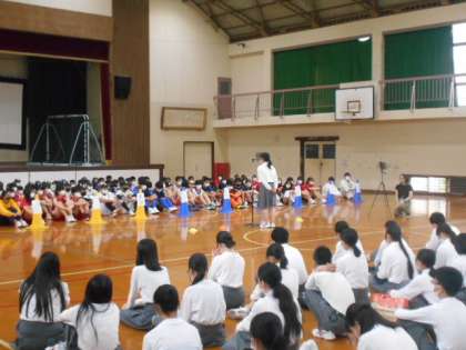 7月2日(金)6限,夏季選手権大会激励会を,2・3年生は体育館,1年生は教室でオンラインと分かれて開催しました。