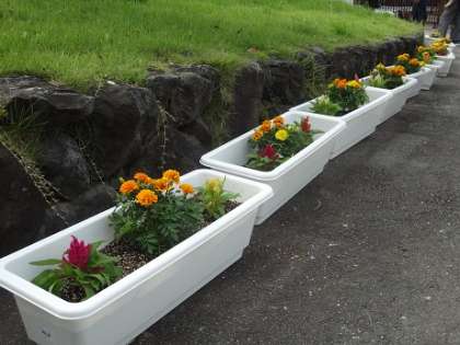 おかげさまで校門周辺が一気に華やかになりました。かわいい花たちが,生徒たちの心を潤わせてくれることでしょう。参加してくれたすべての人に感謝いたします。ありがとうございました。