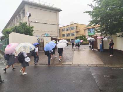<6月あいさつ運動>6月15日(水) 公開日 2022/06/16 更新日 2022/06/16 PTA活動報告 梅雨入りした今月のあいさつ運動は色とりどりの傘が見られました。 学級委員さんも参加して頂いてます。 来月15日はお子様の登校姿を見てみませんか? あいさつ運動、飛び入り参加お待ちしております。