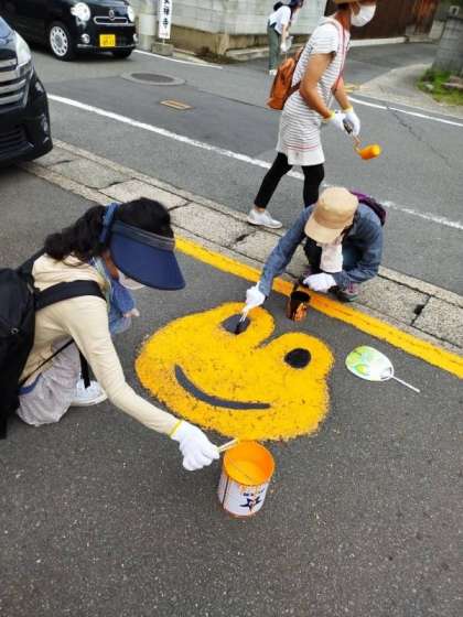 久世校区の道路にはたくさんのカエルが子ども達を見守ってくれています。