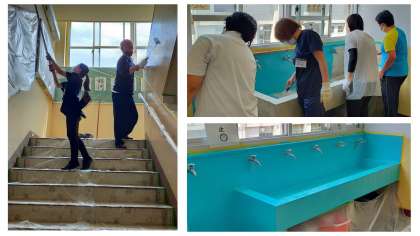PTA本部の方と教職員で校舎内のペンキ塗りを行いました。