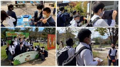 清々しい秋晴れの中,1組では校外学習で京都市動物園に行きました。