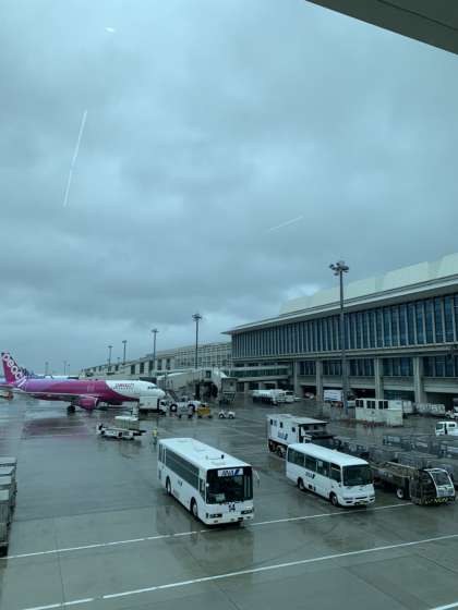 那覇空港に到着 天候は 雨 です。