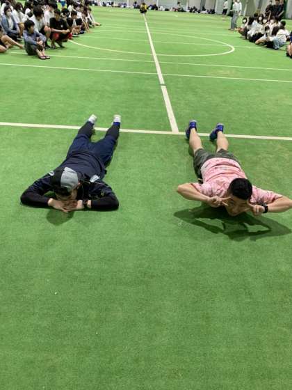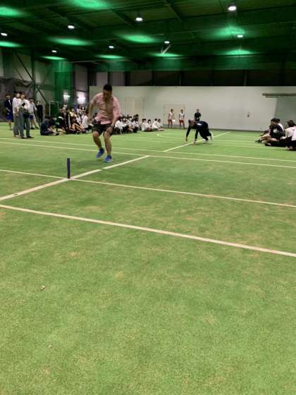 1種目目はビーチフラッグの代わりに バトンを使ってのレク 先生の見本から
