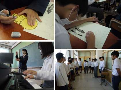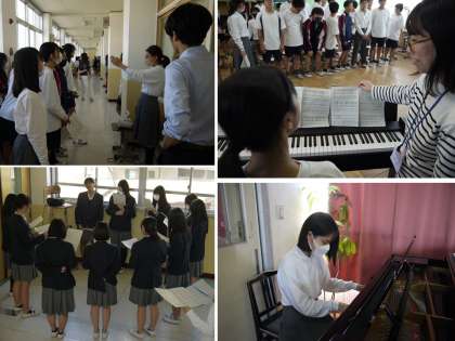 合唱シーズン到来 公開日 2023/10/12 更新日 2023/10/12 学校の様子 校舎にピアノ伴奏と歌声が響いています。 中学生活の風物詩 合唱シーズン到来 歌声だけでなく ほほえましい姿に心が癒やされます。