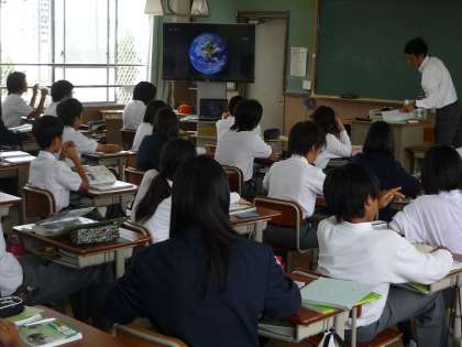 1年社会科の授業風景です。地理の授業が始まりました。