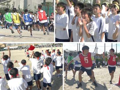 3学年縦割り競技「色別対抗リレー」男子の部