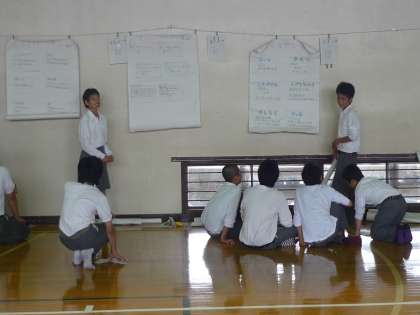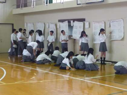 2年生は,6月4日から5日間職場体験を行いました。その報告をポスターにまとめ,他の生徒たちに紹介するポスターセッションを開きました。当日は,体験先の企業の方も数社来ていただき、説明を聞いていただきました。