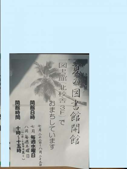 図書館を開館しています。7月は,毎週水曜日。8月は,毎週木曜日(1日,15日を除きます。)