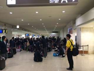 無事に那覇空港に着きました。それまで降ってた雨もあがり、平和祈念公園へバスで移動しています。