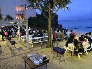 夕食は、ホテルの前のプライベートビーチでバーベキューでした。