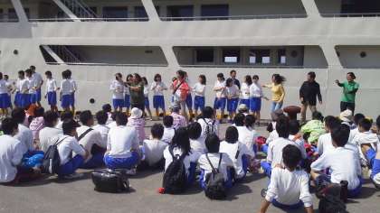 伊江島に着き、入村式をして島の方にご挨拶しました。