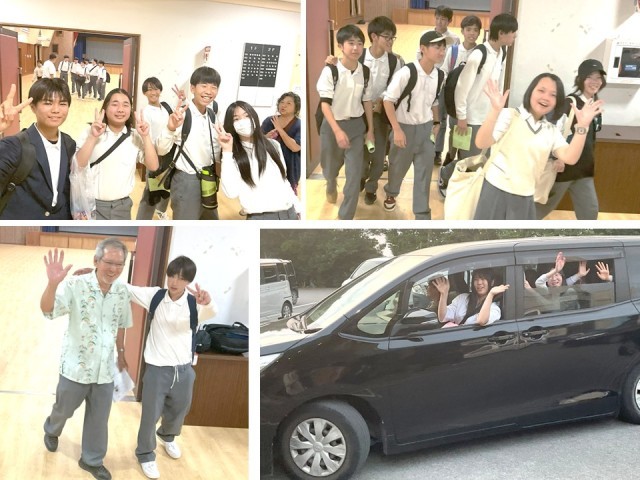 3年生修学旅行 公開日 2026/04/19 更新日 2026/04/19 学校の様子 「命どぅ宝」現在の沖縄県八重瀬町の天候は「くもり」気温は23℃ですが湿度が高いようです。本日の午前中はそれぞれの民家さんとともに沖縄の歴史・文化・自然について学んでいます。保護者の皆様本日も3年生修学旅行の様子をホームページにて随時掲載していきます。午後にはお世話になった民家の方とのお別れの式、そしてビーチレクを行う予定です。 3年生 修学旅行