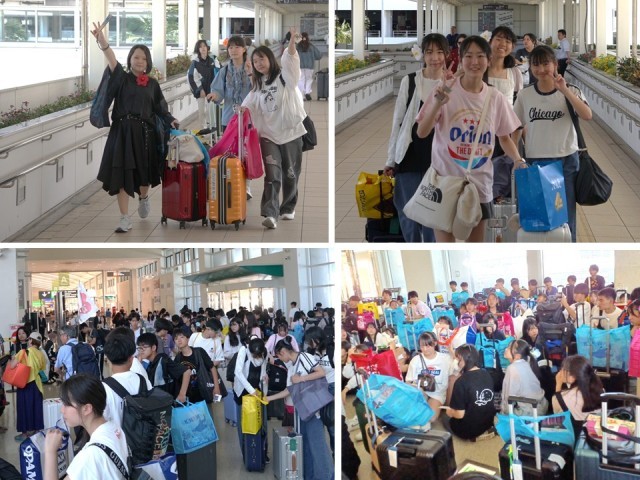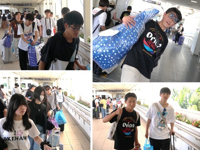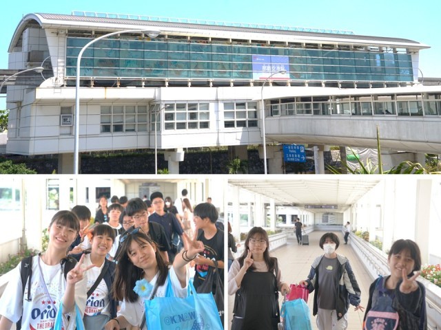 「ゆいレール」から那覇空港に生徒達が集まってきました。