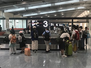 無事、伊丹空港に到着し、ターンテーブルで自分の荷物を探している様子です。