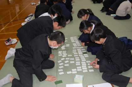 1年生が百人一首大会を行っています。