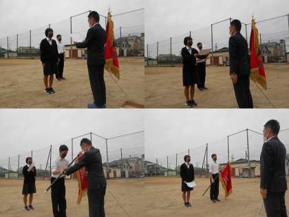 先週末に開催された学年別スポーツ大会の結果が発表され,朝からグランドで表彰式・優勝旗の授与がなされました。