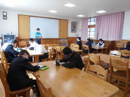 令和2年度も後半を迎え,各部活動のキャプテン(部長)も3年生から2年生にバトンタッチされています。今日の昼休みには新しいキャプテンが集まって,活動時間の確認や部活動時における感染症対策等について話し合いの場が持たれました。