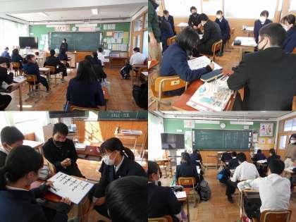 朝晩はさすがに冷え込んでいますが,日中は暖かい日差しが注ぎ気持ちの良い天気が続いていますね。週末を迎えた岡崎中学校の生徒たち,今日も熱心に授業に取り組んでいます。