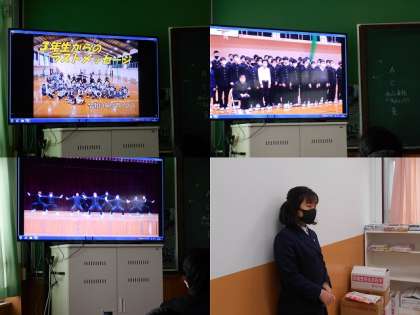 例年であれば体育館に全校生徒が集い,3年生への感謝と卒業を祝うために行われる「3年生を送る会」。コロナ禍,集合することを避けて放送(映像)によって実施されましたが,本当に心の温まるすばらしい送る会でした。